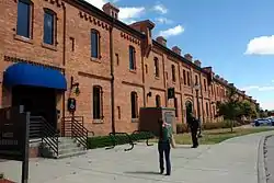 Smith Warehouse is a historic tobacco storage warehouse located at Durham, Durham County, North Carolina. It was built in 1906, and is a two-story Romanesque style brick structure divided into 12 70-foot-wide units by projecting corbeled firewalls. The building measures 850 feet long and 100 feet wide and features ornamental brickwork. It is an example of "slow burn" masonry and wood factory construction. It was the last of the 12 brick tobacco storage warehouses erected by The American Tobacco Company trust beginning in 1897.[2] The building has been converted for academic and administrative uses.