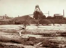 Gympie (initially called Nashville) was established after the discovery of gold in October 1867 by James Nash in the Upper Mary River district. The new goldfield put Queensland on the map as a significant gold producer, contributing much needed finances to the young colony. By Christmas of 1867, according to the Gold Commissioner, the Gympie field had a population of 4,000 (or over 15,000 according to James Nash). Alluvial deposits were quickly exhausted and from 1868 shallow reef mining occurred.[1]