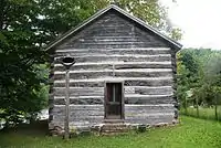 A still extant log church — Palestine Church — was built as a Methodist Episcopal meeting house around 1850.[15]
