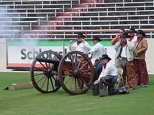 Smokey the Cannon is a replica Civil War artillery cannon that has served as part of the pageantry of college football games at the University of Texas at Austin since 1953. Smokey the Cannon is owned and operated by the Texas Cowboys (an honorary men’s service organization at Texas) and is stationed in the left corner of the south endzone at Darrell K Royal–Texas Memorial Stadium during every Texas Longhorns home football game. After each football season, Smokey the Cannon is generally displayed in the Red McCombs Red Zone atrium for the spring semester.