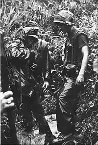 With the entrance of the United States into World War I in 1917, cigarette use increased dramatically among United States military personnel as they were targeted by tobacco companies which touted cigarettes as a way for soldiers to psychologically escape from their current circumstances, boosting overall troop morale.[2][3] Tobacco was viewed as indispensable to the war effort; General Pershing said "You ask me what we need to win this war. I answer tobacco as much as bullets. Tobacco is as indispensable as the daily ration; we must have thousands of tons without delay."[4] Cigarettes became so integrated into life on the battlefield that these symbols of pleasure and comfort were also used as a form of currency.[3] Although cigarettes had been regarded as a physical and moral hazard by early anti-tobacco movements around this time, by 1918, previously anti-cigarette organizations and the military began supporting efforts to distribute cigarettes to troops. The New York Times garnered support for these efforts by stating that cigarettes "lighten[ed] the inevitable hardships of war", and another popular periodical described cigarettes as the "last and only solace of the wounded."[2][5] With the rise of World War II, tobacco companies continued to foster this culture of wartime smoking by sending free cigarettes to troops and supporting the inclusion of cigarettes into the soldiers' rations.[6] Advertisements also encouraged citizens back home to support the troops by sending cigarettes.[3] Despite mounting evidence in the 1950s of the adverse health effects of smoking and tobacco use, the military continued to include cigarettes in rations until 1975.[7]