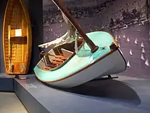 Edson B. Schock modified the design in the 1940s and also published the plans in The Rudder magazine, which rekindled interest in the boat and it became popular as a youth sailing class in California with more than 500 wooden boats built in total. Between 1961 and 1966 W. D. Schock Corp built 28 examples with fiberglass hulls.[1][2][6][7][8][9]