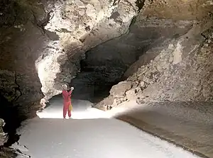 Snowy River Cave Passage is a cave passage within Fort Stanton Cave in Lincoln County, New Mexico, obtaining its name from a stream bed of white calcite.
