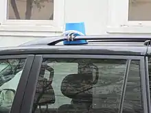 The Society of Blue Buckets (Russian: Общество синих ведёрок Obshchestvo sinikh vedyorok) is a free protest movement that emerged in Russia in 2010[1] as a response to the arbitrary, self-serving use of emergency rotating blue flashers by public servants. Inspired by blue toy buckets' strong resemblance to emergency blue rotating lights, members of the Society affix buckets to their vehicles’ roofs during automotive flashmobs, as a manifestation of their protest against misuse of emergency lights.
