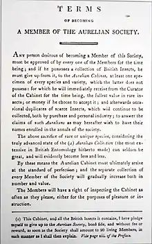 • 1801 saw a third Aurelian Society founded by Adrian Haworth who also established a set of stringent terms for member. It survived until April, 1806, with only ten members and little growth, when it was dissolved.[1]