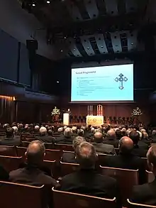 In April 2005, the society celebrated its 150th anniversary with a week-long festival, "Stand Up For Jesus". The Archbishop of Canterbury, Rowan Williams, addressed the gathering and the Royal Albert Hall was filled to capacity for the closing Mass.