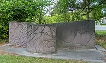 ![]() A former RNZAF North American Harvard mounted outside the Air Force Museum of New Zealand, a prominent feature of Sockburn | |