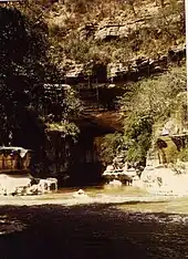 - The Tourist Entrance downstream from the Holuca Resurgence at a point where the abandoned meander forming the dry valley rejoins the Web river