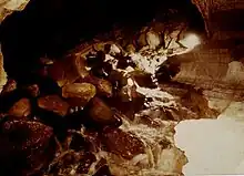 The explorer Arthur Donaldson Smith recorded his visit to the cave in 1894.[3] An Italian expedition also visited in 1913.[4] In 1934, Henri Breuil conducted archaeological investigations in the area.[5] The Italians almost certainly visited the cave during the Italian occupation of Ethiopia, but apparently none of these early explorers made a through trip from Ayiew Maco to Holuca.