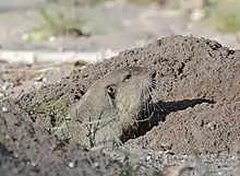 Gopher sticking out of burrow