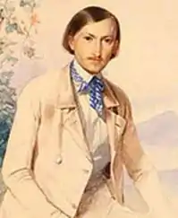 He was an adopted son of painter Maksim Vorobyov. In 1833, he entered the Imperial Academy of Arts, where he studied landscape painting and perspective with his father.[1] He received a silver medal in 1836 and two gold medals (1837 and 1838), the latter for his rendering of the Benckendorff Manor House near Tallinn. He graduated in 1839 and received the title of "Artist".[2]