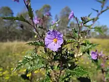 Solanum cinereum, commonly known as Narrawa burr,[2] is a species of flowering plant in the family Solanaceae. It has dark green, spiny leaves and purple flowers and grows in open woodland in south eastern Australia.