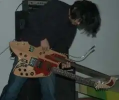 ![]() Masahiko Ohno performing live with one of his home made guitars | |