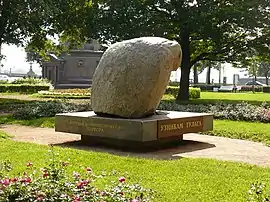 - ↑ "Desecrated monument cannot be restored before departmental responsibility is established" [Расписанный вандалами памятник в Санкт-Петербурге не могут отреставрировать до определения его ведомственной принадлежности] (in Russian). TASS. 3 December 2013. Retrieved 2020-03-19.