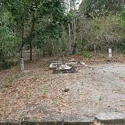 Jardine was buried in the south area of the Somerset Grave Site in 1919, and his grave protected by a timber fence. His wife, Sana, who died in 1923, was buried nearby.[41] A memorial to Frank and Sana Jardine was installed in 1924 by their family. In 1935 the graves of Frank and Sana Jardine were described as lying side by side, surmounted by tombstones and surrounded by a fence made out of old ship's timber and anchor chains.[42][43] Buried in close proximity is Frank Jardine's grandson, (Cholmondeley) Gordon Vidgen (1903-1962).[44][45][46] Other graves in this part of the Somerset Grave Site are said to be of Sana's mother (c. 1901) and possibly two children.[1][47][48][49][50][51][52][53][54][55][56]