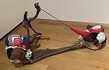 Gomes' use of secondhand and gifted objects is informed by her decolonial standpoint and is both a manifestation of Brazil’s rapid and uneven industrial development and a critique of Brazil's culture of wasteful consumption and environmental destruction.[11] These materials, which arrive at her studio more or less by chance, guide her through the creative process and "always tell [her] what they want to be" as she reshapes and entangles them into one another.[12] She often juxtaposes soft and hard materials, creating movement in her sculptures which allude to her love of popular Brazilian dances. Gomes's work features in international collections and is exhibited in the David Geffen Wing of the Museum of Modern Art.[13] The artist is represented by Mendes Wood DM, Blum & Poe, and Pace Gallery.[14]