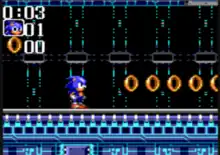 In Sonic Chaos, players control one of two characters—Sonic the Hedgehog or his sidekick Miles "Tails" Prower—and must complete each of the game's eight worlds in a quest to retrieve the Chaos Emeralds from the evil scientist Dr. Robotnik, who plots to use them to rule the world.[3] Each world, referred to as "zones" in-game, is made up of three levels, called "acts", the third one consisting of a boss fight against one of Robotnik's henchbots, or Robotnik himself in the final zone.[3] Levels are designed to allow the player to move as quickly as possible, and are largely based on those in its precursor Sonic the Hedgehog 2. The gameplay itself involves running through each level while collecting rings and defeating Robotnik's robotic minions; rings protect Sonic and Tails from being hit by an enemy or obstacle.[3] Levels also contain small television monitors that can be smashed to reveal a power-up icon, which grant Sonic and Tails with unique abilities, such as speed shoes, a one-hit shield, and extra lives.[3]
