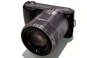 The Sony NEX-C3 is a digital camera announced 8 June 2011.[2] It is a mirrorless interchangeable lens camera with a compact form factor and APS-C size image sensor. The Sony camera was manufactured in Black, Silver, and Pink.[3] This camera was unfairly compared against later models such as the NEX-5R using a body only weight of 225g compared the NEX-5R battery and card inclusive weight of 276g, which lead to the mistaken claim that the NEX-C3 was 51g lighter.[4] The camera was later replaced by the NEX-F3. [5]