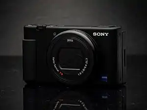 The Sony ZV-1 is a 20MP Sony compact digital camera with a 1-inch image sensor.[1] It is similar to the Sony RX100 V with extra features, such as features for vlogging and quick video production.[2][3] The camera can record video in XAVC S and AVCHD formats.[4] The camera was released in May 2020 as part of Sony's ZV line-up. Its launch price was $799, with a pre-order price of $749. This was the first camera in the Sony ZV line-up. The camera comes in two different colours, black or white. It also comes in a vlogging kit as an optional extra. The camera is likely a successor to the RX100 Mark VII, as Sony hadn't released a RX100 since 2019.