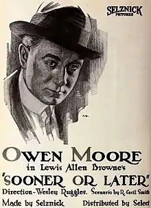 Sooner or Later is a 1920 American silent comedy film directed by Wesley Ruggles and starring Owen Moore, Seena Owen and Clifford Grey.[1] With no holdings located in archives, it is a lost film.[2]