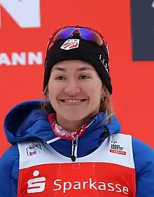 ![]() Sophie Caldwell during World Cup competitions in Dresden, Saxony, Germany in January 2018 | |