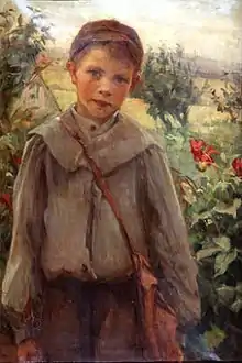 Pemberton showed her work at many regional galleries in the UK (1895-1898), at the Art Association of Montreal (AAM) (1895 and in 1910), the Royal Canadian Academy (1904, 1907, 1909),[11] the Royal Academy in London (1897, 1898, 1901, 1904, 1907, 1910, 1916),[10][4][12] the Paris Salon with honourable mention medal in 1899 for her painting Little Boy Blue (Art Gallery of Greater Victoria) (1899, 1900 and 1903), the Canadian section of the Exposition Universelle in Paris (1900),[4]in Victoria (1902, 1904),[13] in Vancouver (1904),[2] and in the Canadian exhibition at the Louisiana Purchase Exposition (the St. Louis World's Fair) (1904). She exhibited 30 of her works at the Provincial Agricultural Exhibition in Victoria, B.C. and a show of The Pemberton Pictures in Vancouver (both 1904).[4] She had a solo show of 40 oil landscapes at the Doré Gallery in London in 1909. In Victoria, she also had work in the Island Arts and Crafts Society exhibitions in 1916, 1921, and 1922.[2]
