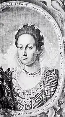 Sophie of Solms-Laubach (15 May 1594 – 16 May 1651), was a German regent, Margravine of Brandenburg-Ansbach by marriage to Joachim Ernst, and regent during the minority of her son from 1625 until 1639.