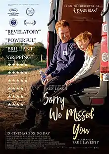 Sorry We Missed You is a 2019 drama film written by Paul Laverty and directed by Ken Loach.[1][2]