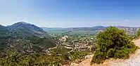 The origin of the name Souli is uncertain. In the earliest historical text about Souli, written by Christoforos Perraivos in 1803, an oral tradition of the locals is recorded. According to this, the first settlers of Souli were shepherds who came from a village called Gardiki trying to avoid the Ottoman oppression. A certain Muslim ("Turk" in the text) named Soulis attempted to expel the early Souliotes from there but the latter resisted with arms. In the battle they killed Soulis and since then the area was named Souli.[3] However, Fourikis (1934) goes as far as proposing that Perraivos invented this explanation himself.[4] The most commonly accepted theory in contemporary historiography, as suggested by Fourikis (1934), states that Souli derives from the Albanian term sul, which means "mountain peak", while it may also be interpreted as "watchpost, lookout, mountain summit".[4]