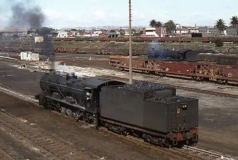 By the 1950s, some were allocated to the Cape Midland system, stationed at Sydenham in Port Elizabeth. Until the Midland received Class 15F locomotives in 1957, they worked the mainline section to Cradock. Even though they were subsequently allocated to dock shunting and yard work in the New Brighton marshalling yards, they still assisted with mainline work when required and, in spite of their small 51 inches (1,295 millimetres) diameter coupled wheels, were comfortable at 60 miles per hour (97 kilometres per hour) when employed in tandem with the larger Class 15F.[4][10]