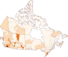 | Source: Statistics Canada [31]: 16 [32][33]: 353 [34]: 225 [35]: 236 [36]: 503 [37]: 272 [38]: 2 [39]: 484 [40]: 5 [41]: 2 [42]: 26 [43]: 31&68 [44]: 34 [45]: 47 [46]: 68 [47]: 11 [48][49][50][51][52][1] | ||
