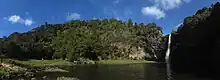 Hunua Falls volcano is to the west (left) of the waterfall in this picture
