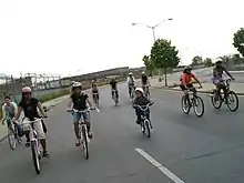 Cyclists on Food Center Drive in 2006, prior to the construction of the bikeway.