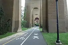 One of the key components of the Greenway is the Randalls Island Connector,[21] which was completed in 2016.[22] This provides a pedestrian and bicycle path from Randalls Island to the Mott Haven neighborhood in the Bronx. This, along with the Wards Island Bridge, creates a route between the Bronx and Manhattan that is completely segregated from vehicular traffic and free from steps.[23] Project cost was $3.6 million.[24]