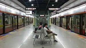 South China Normal University Station or Huashi Station (simplified Chinese: 华师站; traditional Chinese: 華師站; Cantonese Yale: Wàhsī Jaahm) is a station of Line 3 of the Guangzhou Metro. It started operations on 30 December 2006. It is located at the junction of Tianhe Road North[1] and Wushan Road[2] in Tianhe District. Its name is derived from the nearby South China Normal University (华南师范大学; 華南師範大學; Wàhnàahm Sīfaahn Daaihhohk).[3][4]