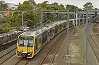 The most common Central to Kiama services are operated by 4/8 car H sets (OSCARs). All-stations services operate between Waterfall, Thirroul and Port Kembla with 4-car T sets (Tangaras). Shuttle train services between Kiama and Bomaderry are operated by 2-car diesel Endeavour railcars, due to the line not being electrified past Kiama.[10]