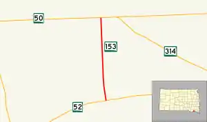 South Dakota Highway 153 (SD 153), also known as 435th Avenue, is a state highway in Yankton County, United States, that runs from SD 52 to SD 50.