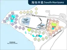 South Horizons (Chinese: 海怡半島) is a private housing estate located in Aberdeen at the western end of Ap Lei Chau (a.k.a. Aberdeen Island), in the Southern District of Hong Kong.[1] Developed by Secan Limited,[2] a Hutchison Whampoa associate company,[3] it consists of 34 blocks, ranging in height from 25 to 42 storeys, completed between 1993 and 1995.[4] Census data indicated that South Horizons had a population of 31,496 in 2011 and was the most populated among the private and public estates of the district.[5]