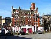 The Gothic revival style former fire station was probably designed by the architect Robert Pearsall[6] at the Metropolitan Board of Works Architect's Department and was built in 1881. It remains a rare example of a fire station built for horse-drawn tenders which still has the look-out tower and original doors in place. Its history as a fire station was short however, as motorised fire appliances, introduced in the early 20th century were too big for its doors, which could not be practicably extended, and the fire station ceased to function as such in 1917. Between 1917 and 1967, the building was used mainly as a church hall for the neighbouring St Luke's Church.