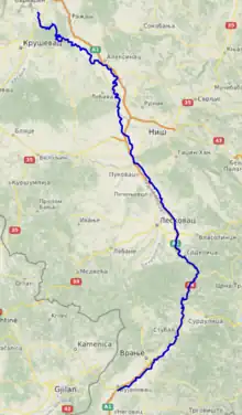 The South Morava (Albanian: Morava e Jugut; Macedonian and Serbian: Јужна Морава, romanized: Južna Morava, pronounced [jûːʒnaː mɔ̝̌rav̞a]) is a river in eastern Kosovo and in southern Serbia, which represents the shorter headwater of Great Morava. Today, it is 295 kilometres (183 mi) long, including its source river Binačka Morava.[1] It flows generally in the south to north direction, from the Macedonian border to Kosovo and onwards to Central Serbia, where it meets West Morava at Stalać, to create Great Morava.