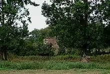 South Ockendon Windmill was built in the 1820s. A date of 1829 is often quoted but the mill was marked on the Greenwoods' map of 1825. The mill was a combined mill, with a waterwheel driving a pair of millstones in the base in addition to those driven by wind. The mill may have been built with the waterwheel from new. The first reference to the waterwheel was in 1845. In June 1853 the mill was struck by lightning. A steam engine had been installed by 1912 and the mill ceased working in 1923. The mill collapsed on 2 November 1977. The wreckage was taken into store at South Woodham Ferrers by Vincent Pargeter, millwright to Essex County Council.[1] A plan to restore and exhibit some of the remains in South Ockendon was shelved in 1994. The remains are still in store, available to be used if a replica of the mill is ever built, either on its original site or elsewhere.[2] In 2005, it was announced that some of the machinery was to be used in the restoration of Halvergate Windmill, Norfolk.[3]