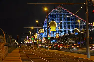 ![]() Blackpool Pleasure Beach in South Shore from Blackpool Tower | |