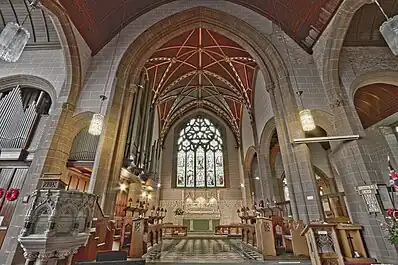 The parish church for South Shore is Holy Trinity Church. The current structure was built in 1895, replacing a church that was originally built in 1836.[77] Other Anglican churches include St Christopher’s; St Peter’s, Holy Cross and St Mary’s. The Catholic churches are St Cuthbert’s and Our Lady of the Assumption. Other places of worship include Seventh Day Adventist Church, Bible Pattern Church, The Gatehouse Pentecostal Church, South Shore Methodist Church, Blackpool Unitarian Church and Victory Baptist Church.