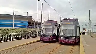 The Blackpool Tramway has 14 stops in South Shore between Manchester Square and its terminus at Starr Gate.