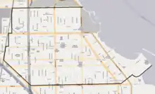 Like all of what is now the City of Chicago, the South Shore community area was originally inhabited by a number of Algonquian peoples, including the Mascouten and Miami.[3] After the expulsion of Native Americans by white settlers in the nineteenth century, it became characterized by small settlements including Essex, Bryn Mawr, Parkside, Cheltenham Beach, and Windsor Park.[4] The area is bounded by 67th and 79th streets to the north and south and by Stony Island Avenue and Lake Michigan to the west and east. In 1861, the Illinois General Assembly incorporated Hyde Park Township, which included South Shore.[5] The area's population grew as workers in the nearby steel industry settled in the area.[4] Following the June 29, 1889 elections, the South Shore community area was annexed into the City of Chicago with the entirety of Hyde Park Township.[6] The location of the World's Columbian Exposition in nearby Jackson Park prompted the sale of land and building lots. As in other parts of Chicago, the desire for affordable housing at the start of the twentieth century led to the large scale construction of bungalows. Unlike other areas in which bungalows were built en masse, South Shore's bungalow residents were largely affluent. Additionally, South Shore was the destination for white flight from Washington Park as immigrants and African Americans moved there.[4]