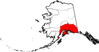 Southcentral Alaska (Russian: Юго-Центральная Аляска), also known as the Gulf Coast Region,[1] is the portion of the U.S. state of Alaska consisting of the shorelines and uplands of the central Gulf of Alaska. More than half of the state's entire population lives in this region, concentrated in and around the city of Anchorage.[2] The region is Alaska’s best-connected region, with the Port of Anchorage, Ted Stevens, Anchorage International Airport, and the Alaska Railroad servicing the area.