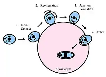 Figure 3 - A representation of the steps involved in the entry of Plasmodium falciparum into an erythrocyte. - Partial intracellular depletion of ATP