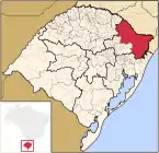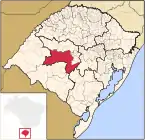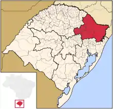 This is the list of mesoregions and microregions of Rio Grande do Sul, a Brazilian state in the Southern Region of the country. The state of Rio Grande do Sul was geographically divided by the Brazilian Institute of Geography and Statistics (IBGE) into seven mesoregions, which, in turn, encompassed 35 microregions, according to the framework in place between 1989 and 2017.[1][2]