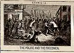 ![]() | "Georgia: The Police and the Freedmen" | "The police, however, arrested several negroes who treated in the most brutal and barbarous manner, beating them over the head so severely as to cause the blood to flow profusely. No attempts were made to arrest any of the white men, although they were the parties who inaugurated and controlled the strike from beginning to end." |