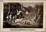 ![]() | "Texas: The Lindley Murder" | "Bell County, Texas: On the night of December 3, a mob of about thirty entered the jail, murdered Mr. Lindley, his son, and another inmate of the jail, who was an entire stranger to the Lindleys." | After Jasper Lindley and Sam Martin were murdered, Jonathan and Newton Lindley and 15 soldiers shot their killers. The Lindleys were then jailed, and later shot to death in their jail cells by allies of men they shot.[6] |